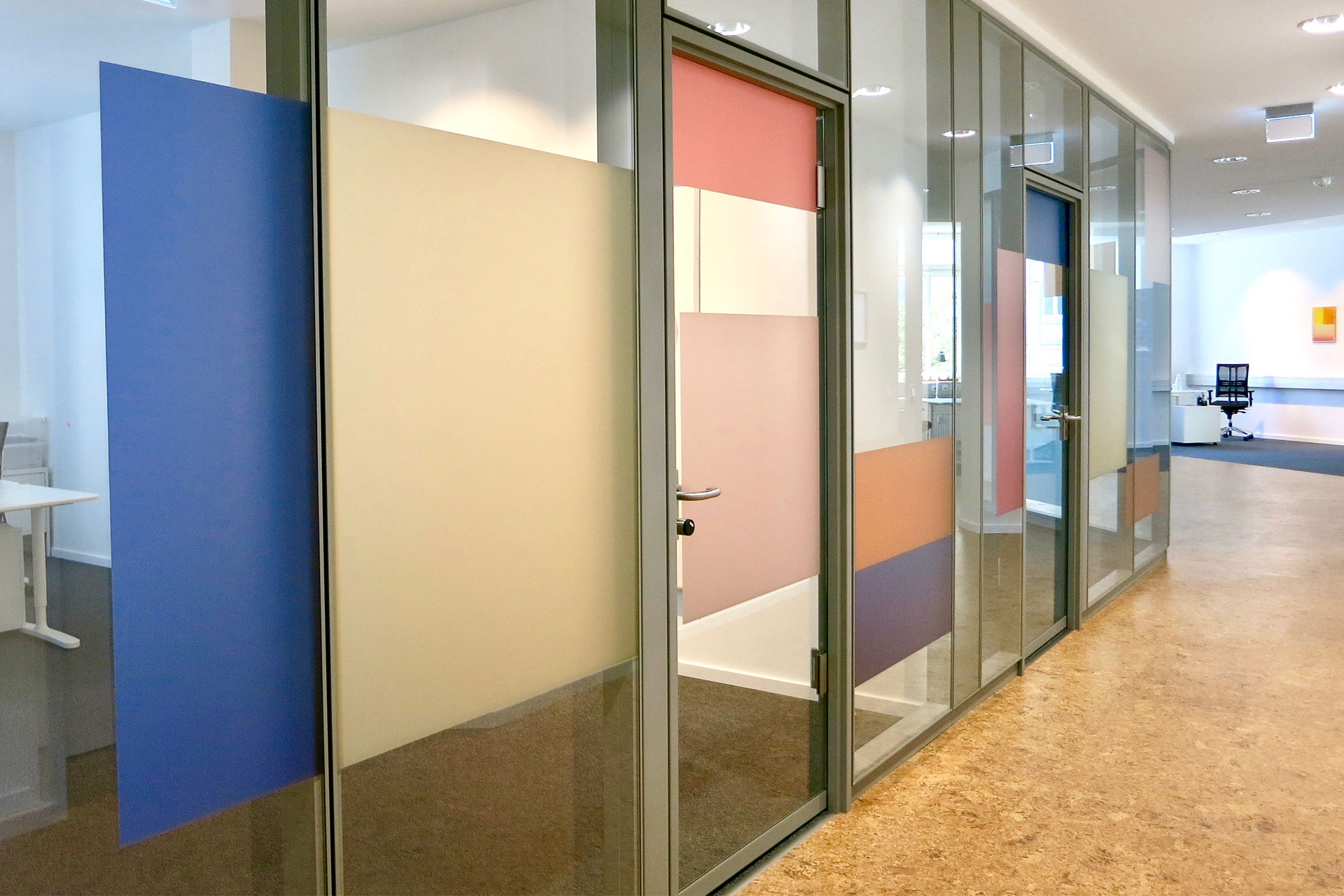 Die GMBC Group ist ein junges Unternehmen, das sich binnen kürzester Zeit als innovatives Technologie- und Dienstleistungsunternehmen im Bereich der Rückversicherungsbranche erfolgreich positioniert hat. Im Zuge der Expansion des Unternehmens wurden neue Büroräume in Hamburg-Mitte bezogen. Neben der funktional optimalen Gestaltung der Workspaces und Teamräume und stand bei diesem Projekt die Umsetzung eines individuellen Farbkonzeptes im Vordergrund. Glastrennwände zwischen Fluren und Konferenzräumen unterstreichen Offenheit und Transparenz. Blickdichte Farbflächen, die das Corporate Design widerspiegeln, sorgen für Diskretion und unterstreichen Modernität und Innovation.